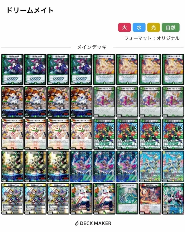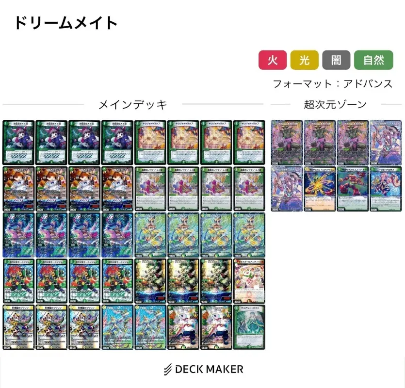 また、《刀志猫のプワソン》・《光夢龍フィオナ・フォレスト》を採用した【光自然ドリームメイト】も発売後から圧倒的なデッキパワーを見せつける形となり、雑多ではあるが全デッキのパワーが上昇し、正解を見つけるのが非常に困難な環境へ